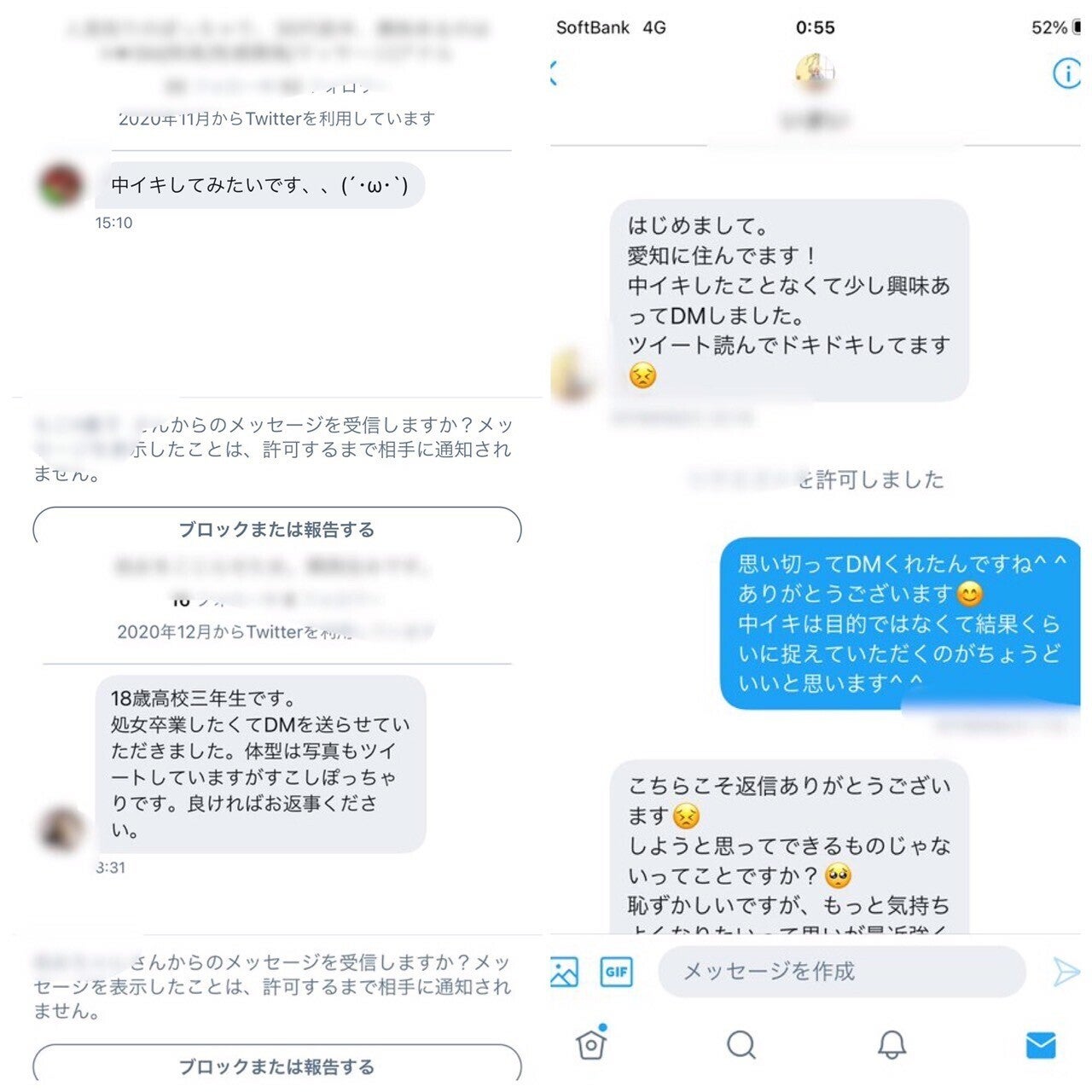 これらは全て女の子の方から送られてきたDMです。
