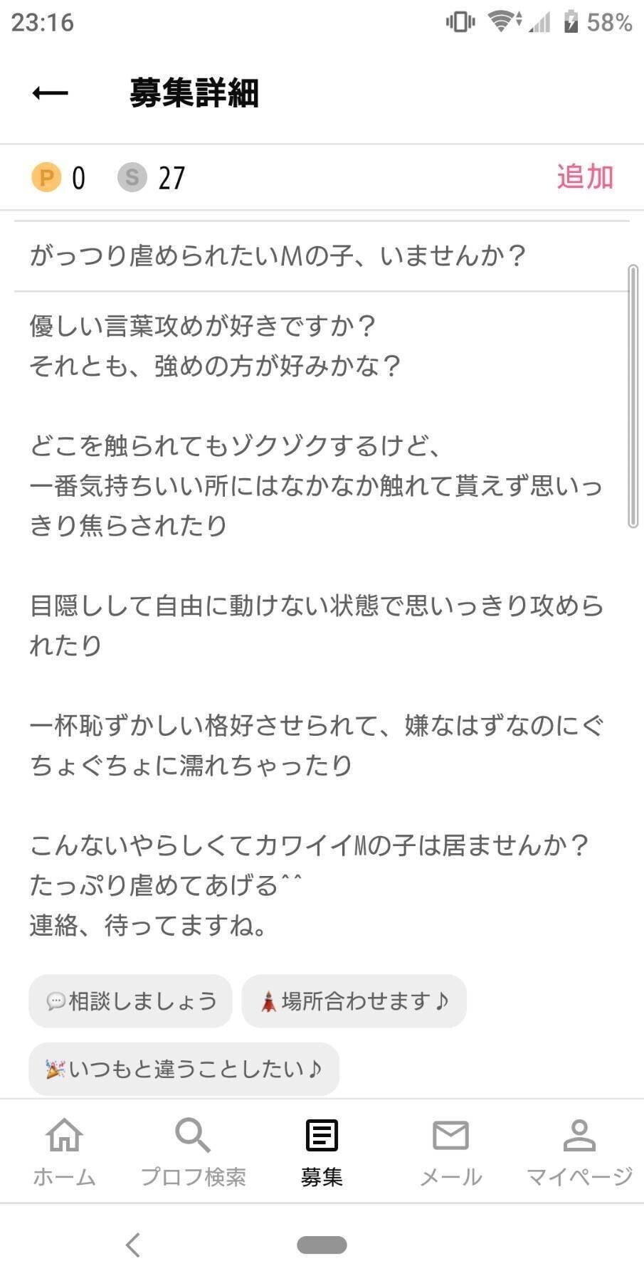 そして肝心のツイートは極端に言えばツイートを読んだ女の子がムラムラして堪らないような、DMを送ってまでもこの人に抱いてもらいたいと思わせる内容にします。