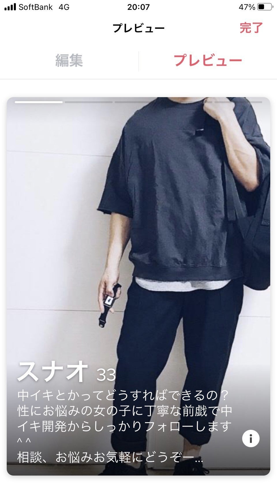 マッチングアプリではTinderや出会い系のようにプロフィールにエロは厳禁です。多くの女性は普通の彼氏を探してマッチングアプリを利用している体なのでここでは彼氏にするならこういう人というような理想の彼氏像としてのプロフィールがポイントです。