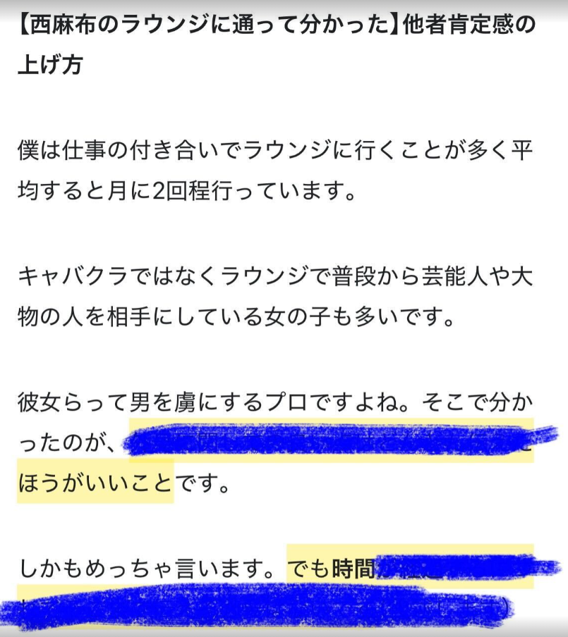 ▼西麻布ラウンジに通って分かった他者肯定感の上げ方