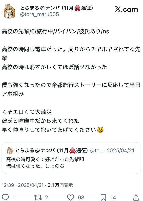 普通の人にとってはただのナンパ失敗に思えるかもしれないです。