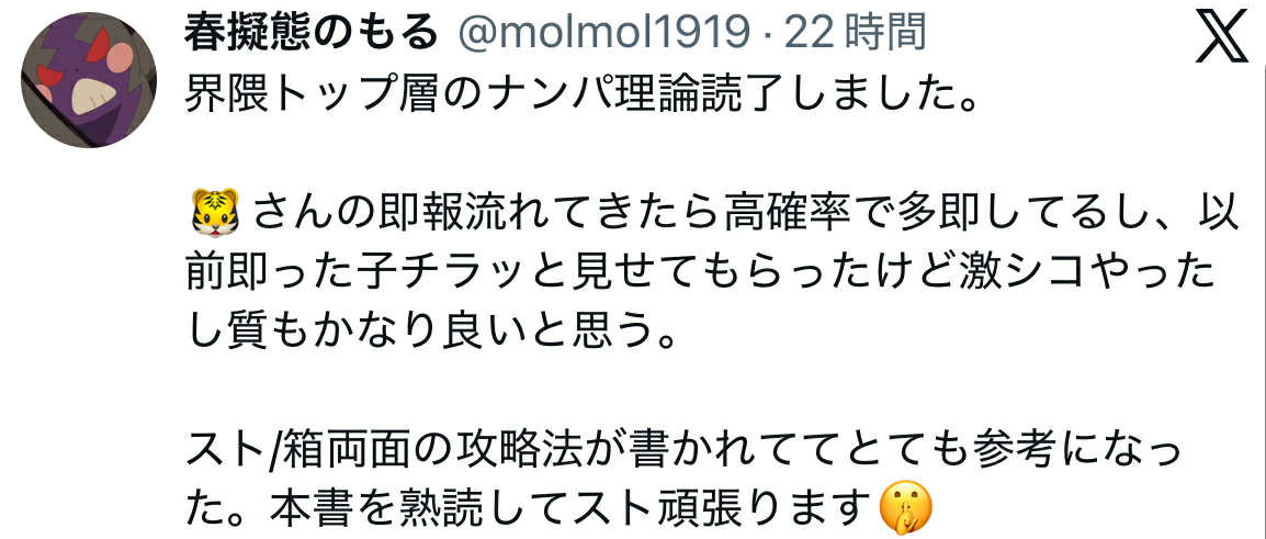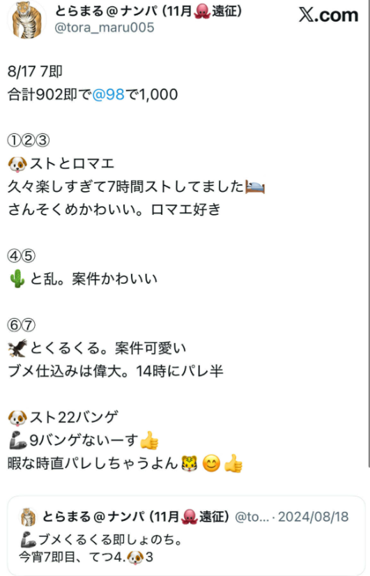 特にここ1、2年くらいで即数が劇的に伸びてきていて、ナンパって運じゃないんだなって思っています。