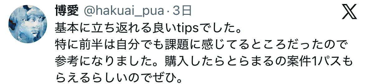 ずるくお金を儲けようとする気は一切ないですし、それなりの内容を書いたと思っています。本文に書いてあることに対して質問があれば、DMとかで質問いただければ回答させていただきます。