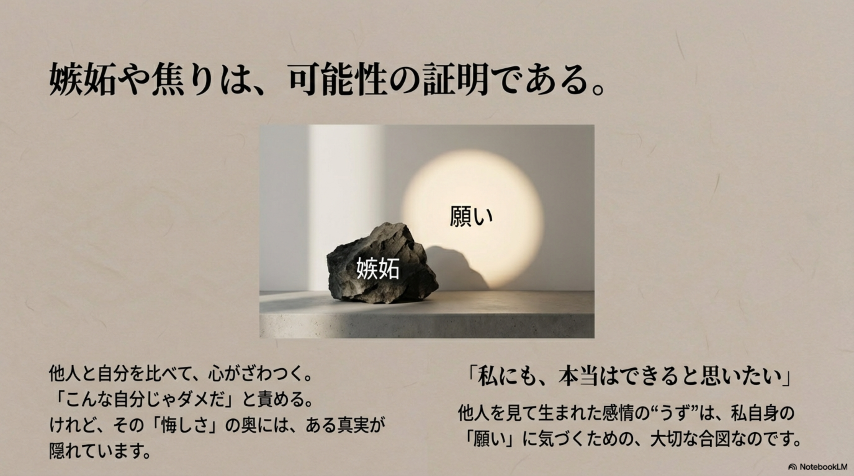 - 感情観察: 嫉妬の奥にある 「信念」 をあぶり出す