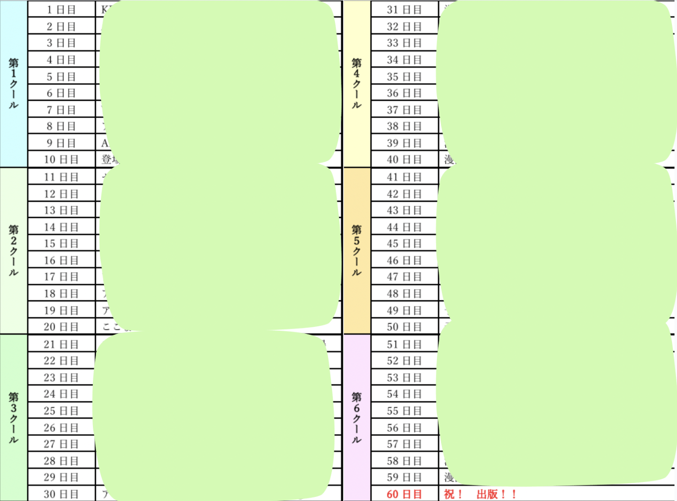 だって、明日から1日ごとにやる事が決まっていて、60日後に出版できるといロードマップが見えていたらどうでしょうか?
