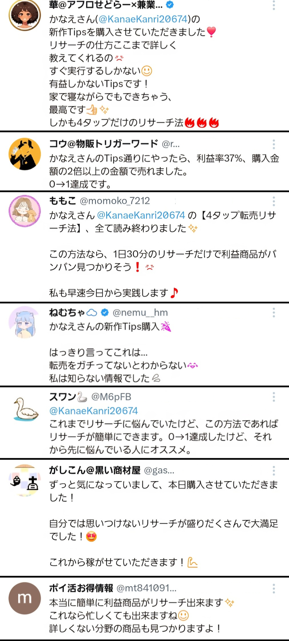 忙しい毎日の中でも、転売ならほんの一瞬で何万円と稼げるので私にとっての救いです。
