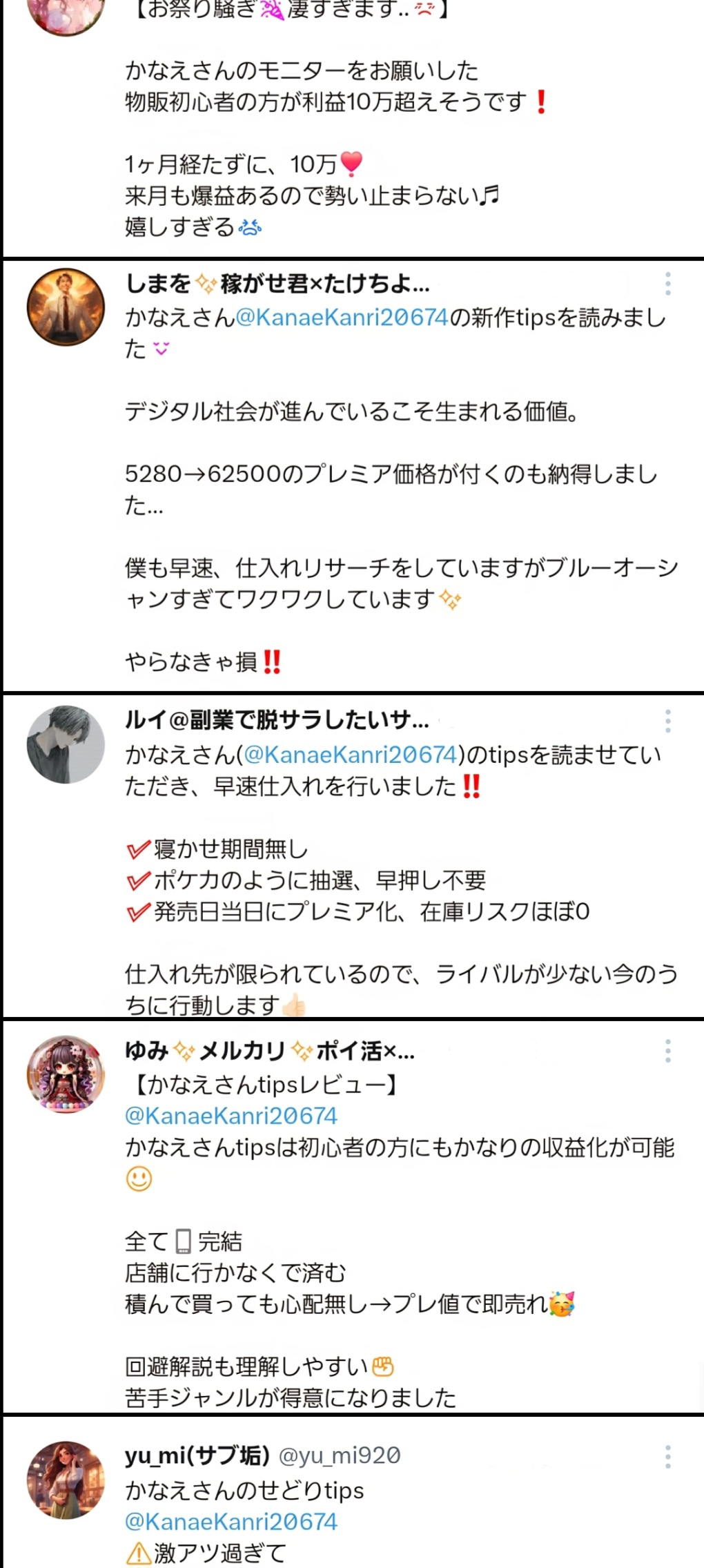 - このTipsは、不良在庫のリスクほぼ0で定価の10倍以上での取引も可能なカテゴリを記載しています。