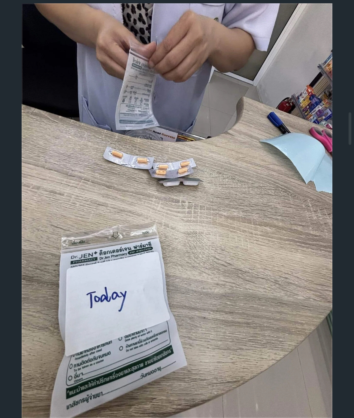 薬剤師と翻訳ソフトで相談しながら処方してもらいました。どれをいつ飲むか小分けしくれた。最後に「ちゃんとゴムはつけてね!楽しんで!」と優しく見送ってもらいました笑