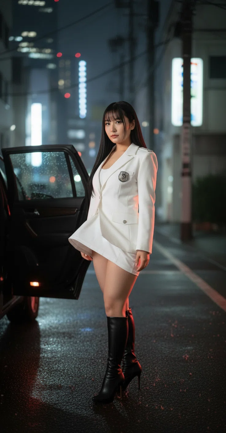 彼女のミニスカートがはためき、ブーツの踵がアスファルトへと音を落とす。