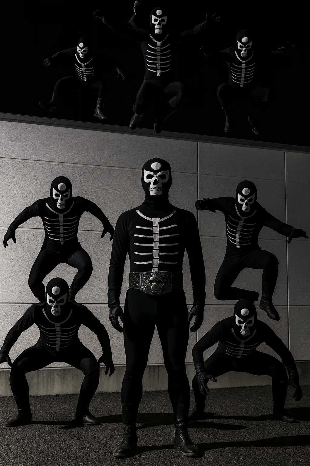 指が振られる。屋根の縁から、さらに五体の戦闘員が滑落してきた。