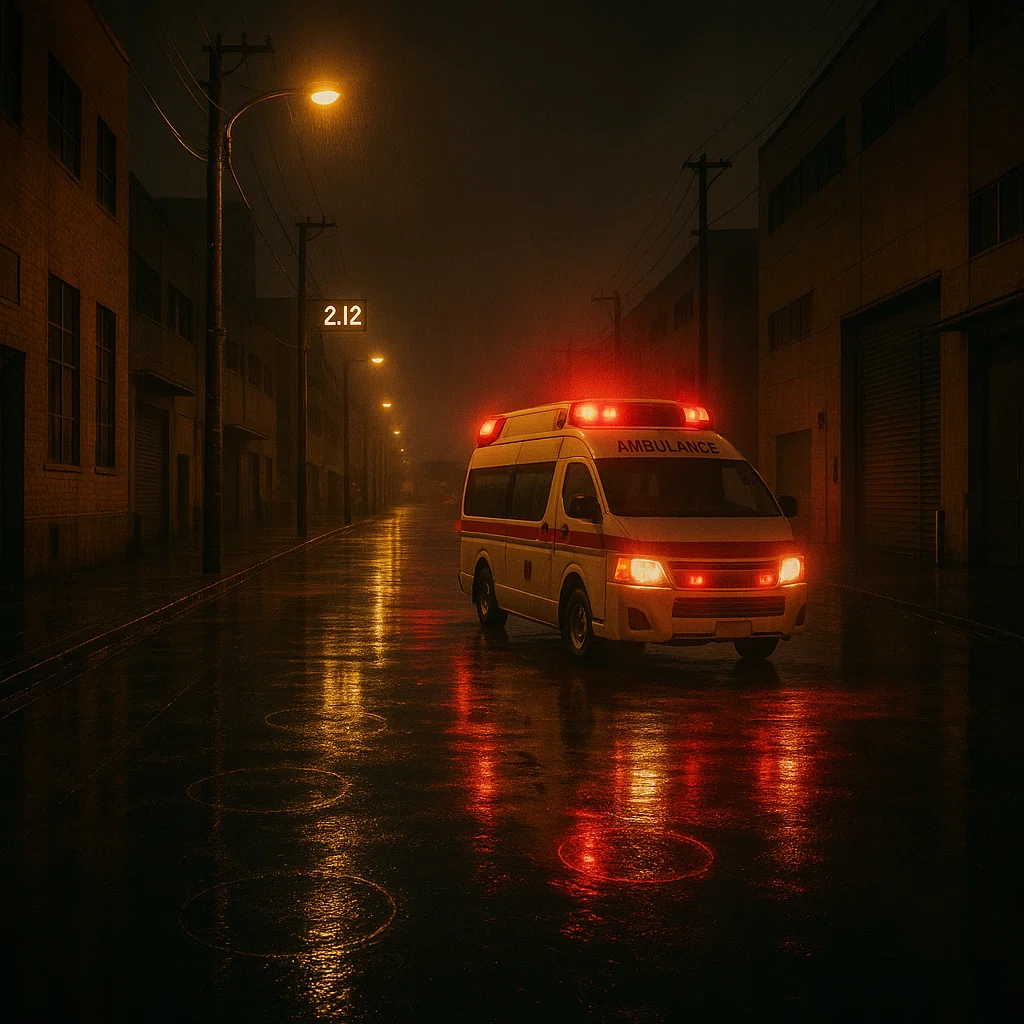 午前二時十二分。湾岸エリア・芝浦の倉庫街。救急車のサイレンはすでに遠のき、現場には赤いライトの残響だけが残っている。