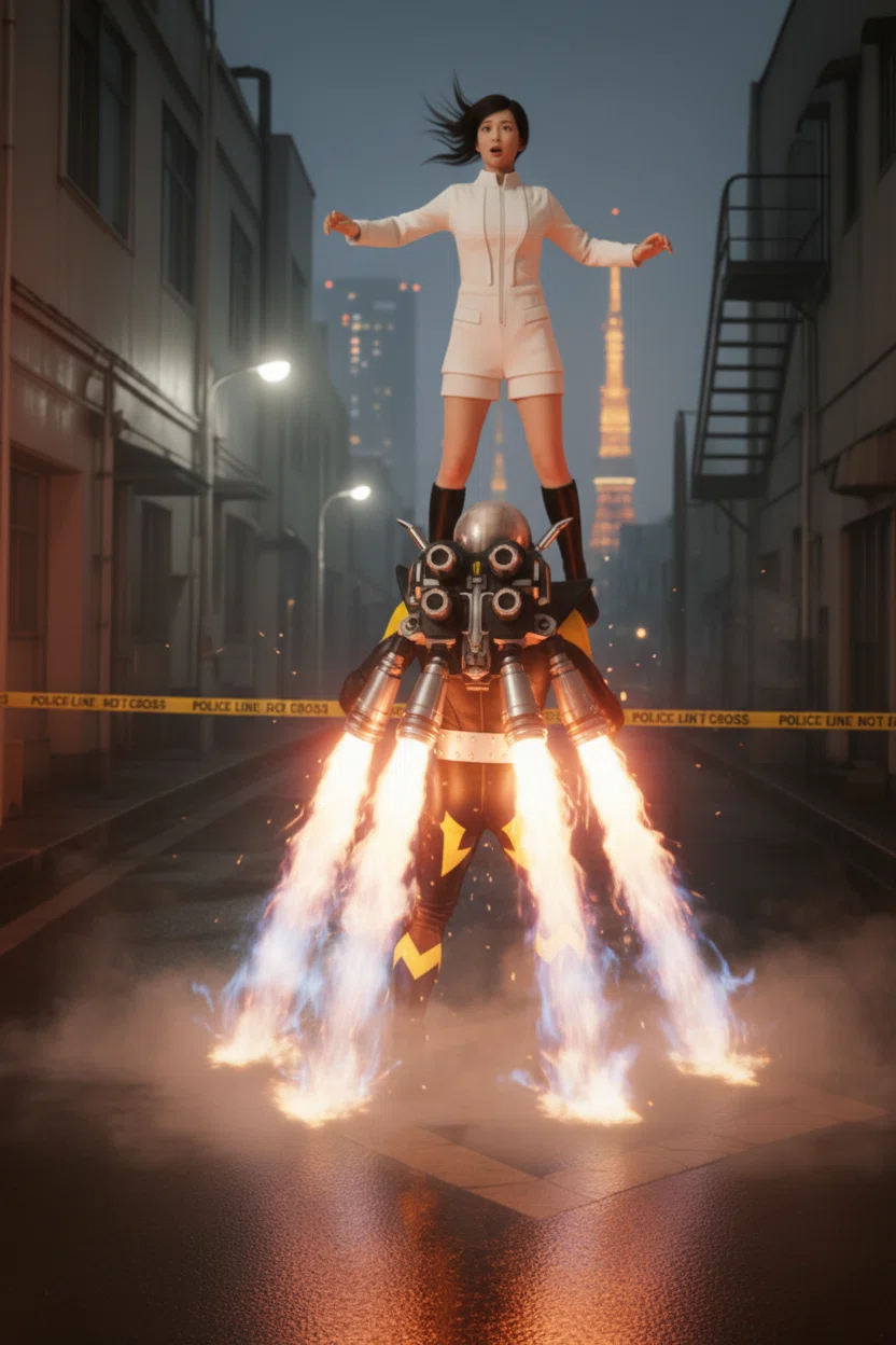 美鈴は地を蹴った。ミニスカートの裾が風を掬い、彼女の影がふわりと跳ねる。――人間の限界を、わずかに越えた加速。だが、まだ“変身”はしない。