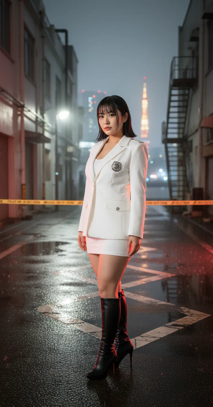 警視庁捜査一課特捜班・桐生美鈴(27)は、ミニ丈のタイトスカートにジャケット、膝下までのロングブーツという癖の強い隊服めいた私服で、白線テープの内側に立った。顎先まで伸ばした黒髪は夜露を帯び、眼差しは凛として鋭い。
