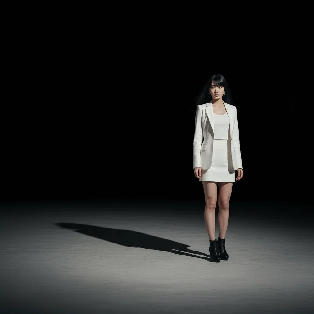 彼女は足元に落ちる自分の影を見つめる。街灯に照らされて伸びた黒い影が、ゆらりと揺らめいた。