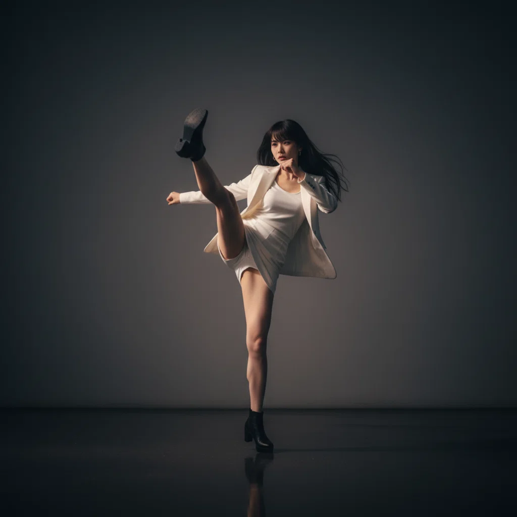 スカートの裾が翻り、鋭い蹴撃が次々と戦闘員を弾き飛ばす。その動きは刑事でありながら武道家として鍛え上げた彼女ならではのものだった。