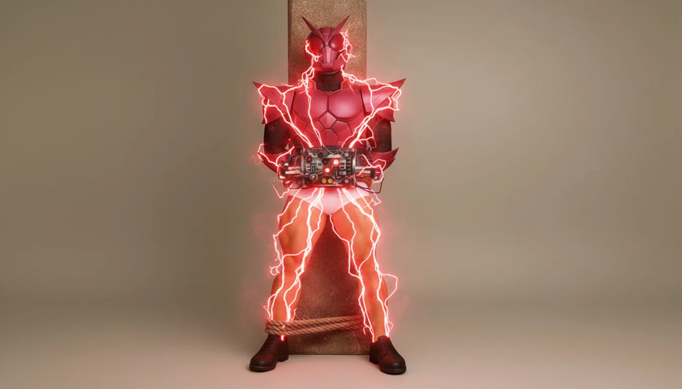 真由美が叫んだ瞬間、縛られた柱の装置が赤く光る。