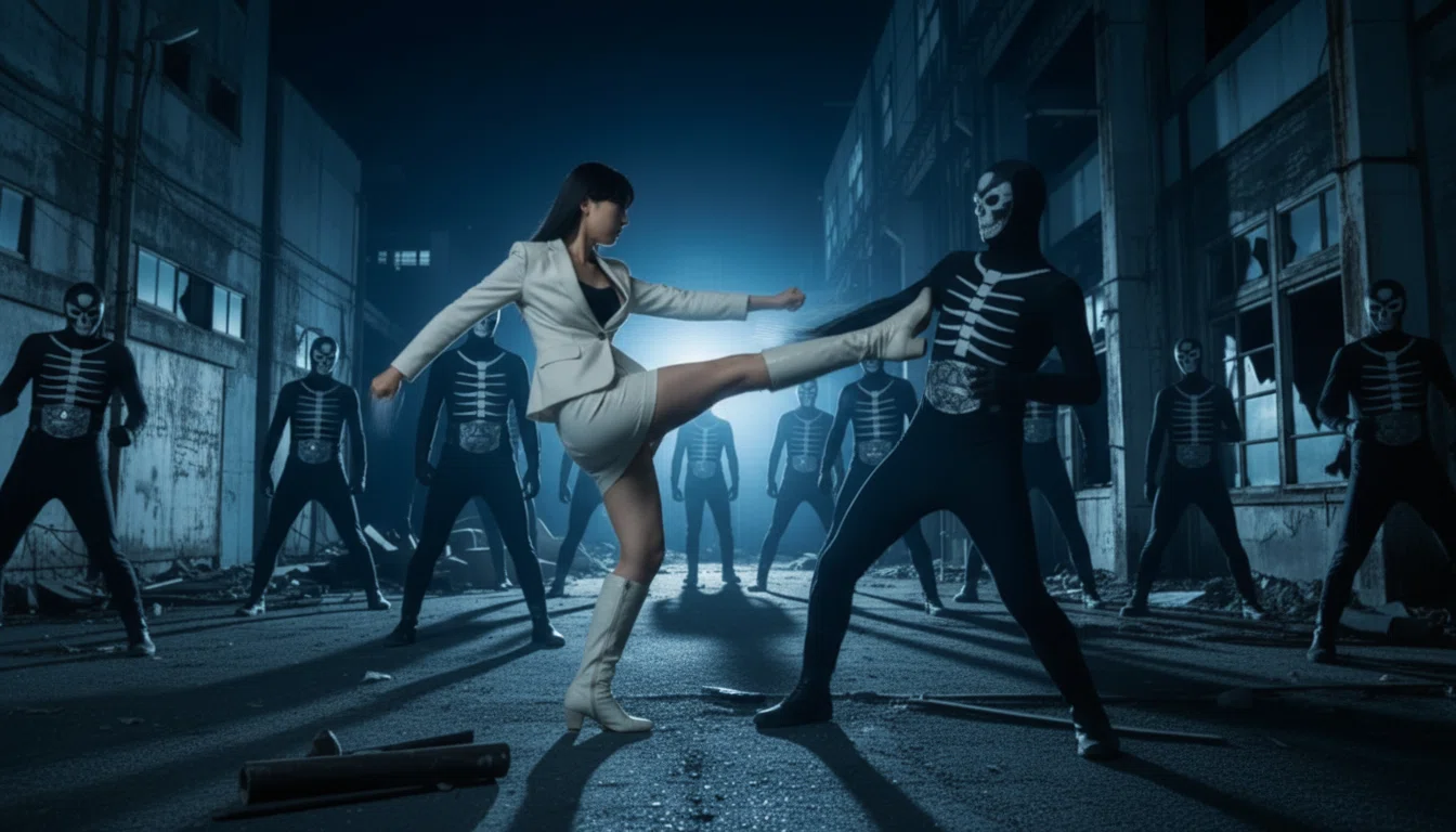 鋭い蹴りが風を切り、敵の顎を撃ち抜く。