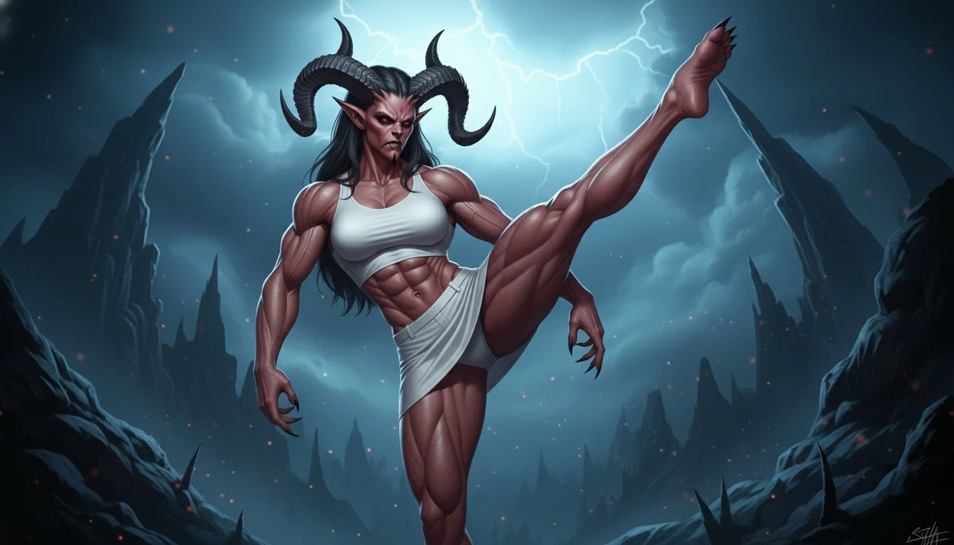 肩から腕にかけて隆起する筋繊維が、赤黒く光を反射している。