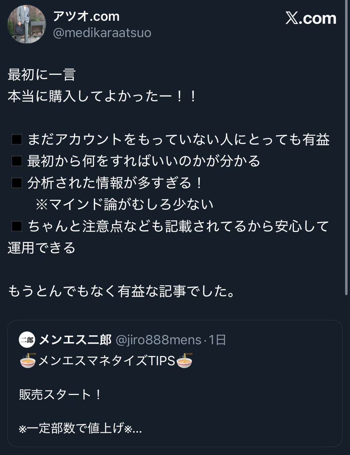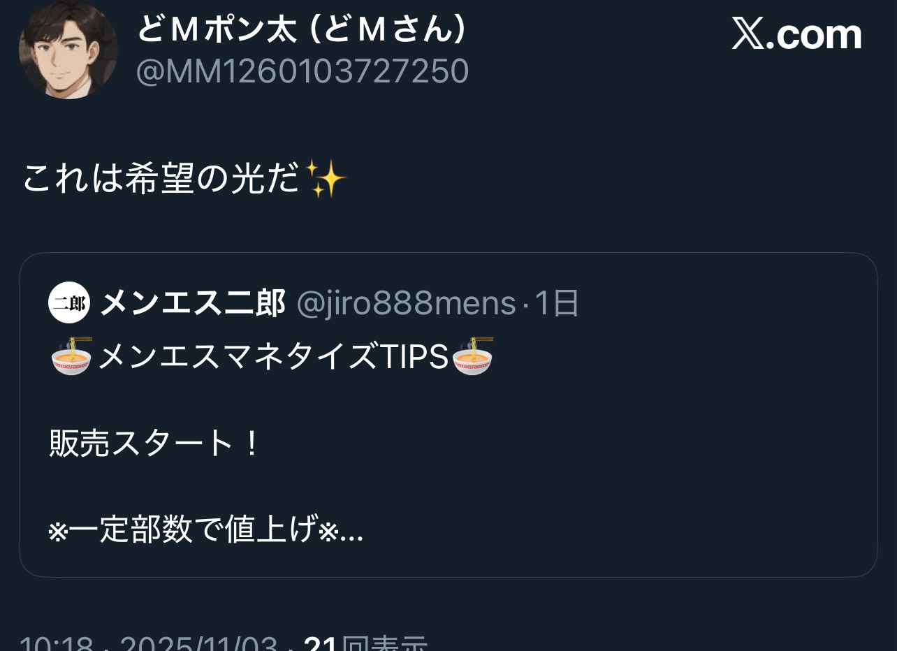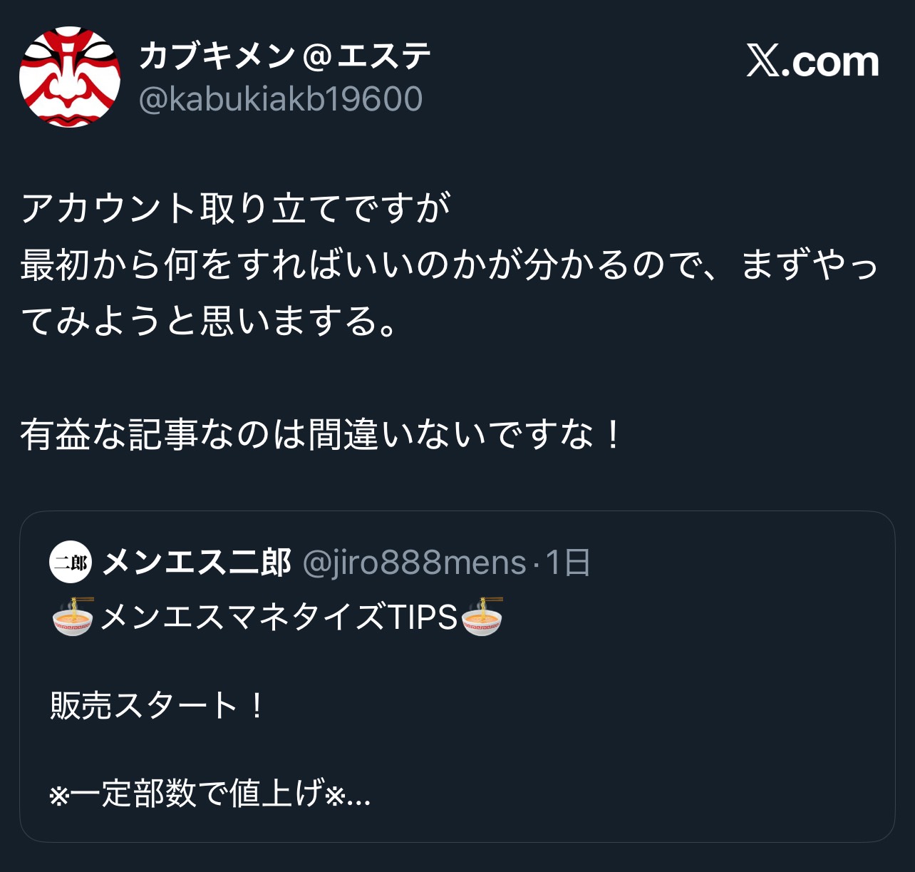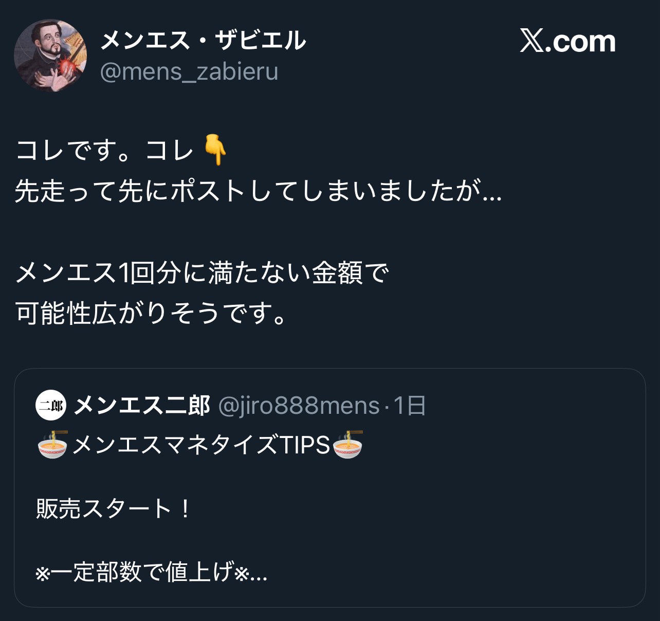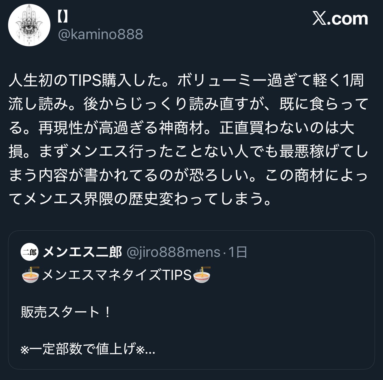 メンエスマネタイズが上手くいっていない人の為に、このTIPSを書きました。