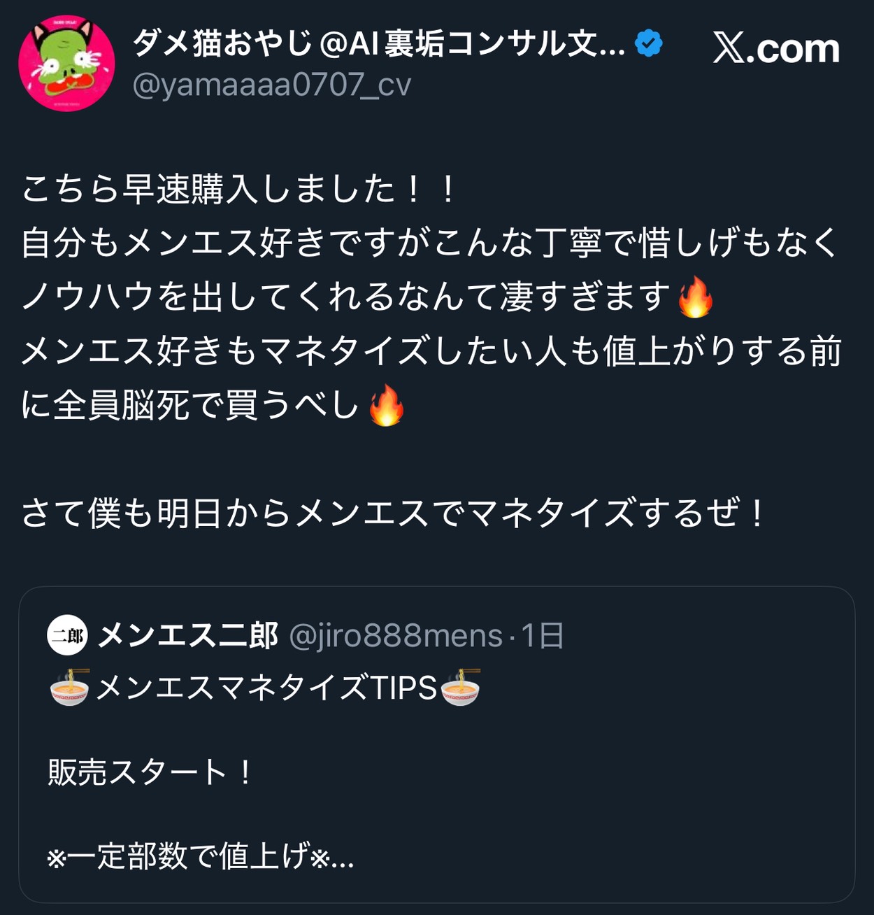 本編でも詳しく話してるけど、今のXマネタイズは完全にチーム戦の時代です。 一人で戦う時代はもう終わった。