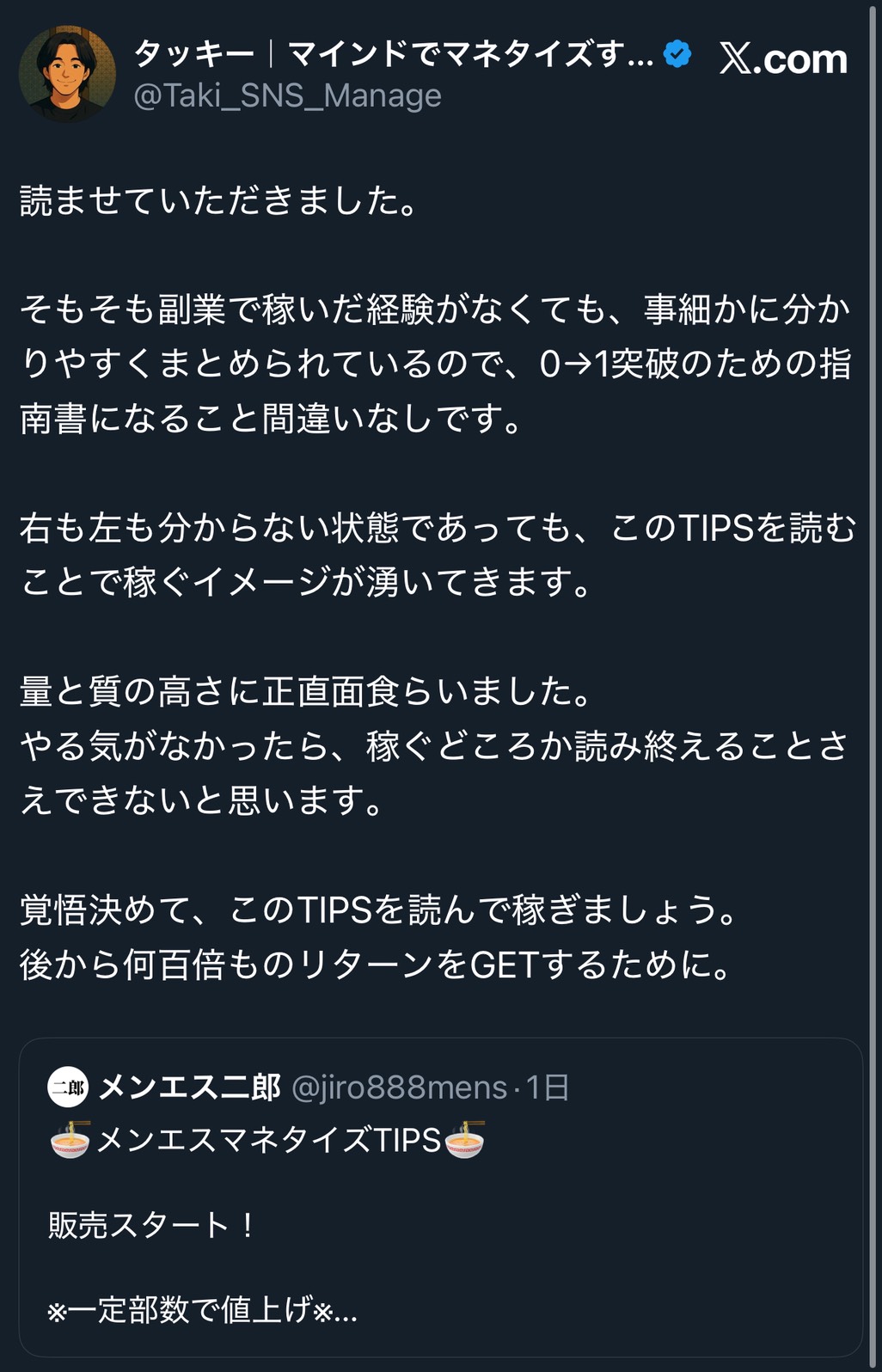 このTIPSは、ただの教材ではありません。 覚悟を決めた人だけが、人生を変えるための武器です。