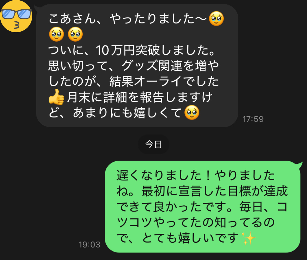 僕と、サポートさせていただいている方々の実績を見ていただければ、マンガトレンドせどりが、 いかに再現性が高く、僕たちを成功に導いたかが伝わるはずです。