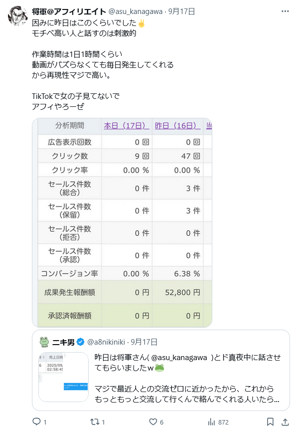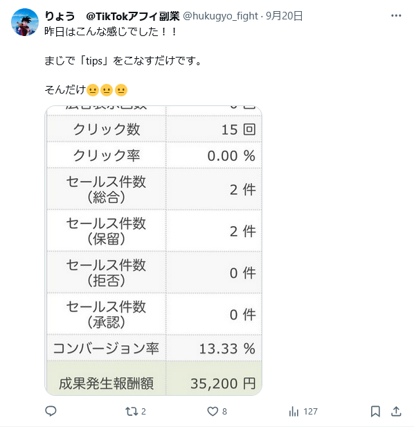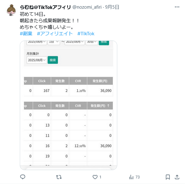 これくらいTikTokアフィは高単価&成約もクソ決まりやすい