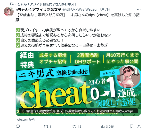 【Cheat】型通りに投稿するだけ&1日30分スマホ1台で"月247万"稼いだニキ男式アフィ完全マニュアル
