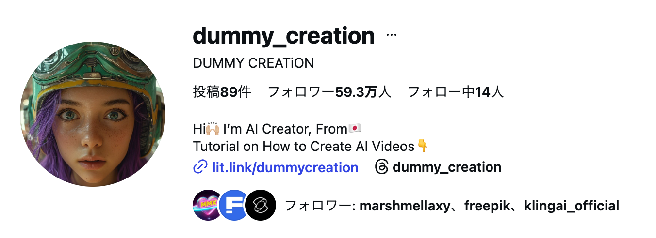 私は冒頭でお伝えしたAI FREAKとは別アカウントで、DUMMY CREATiONという名前でも運用しています。