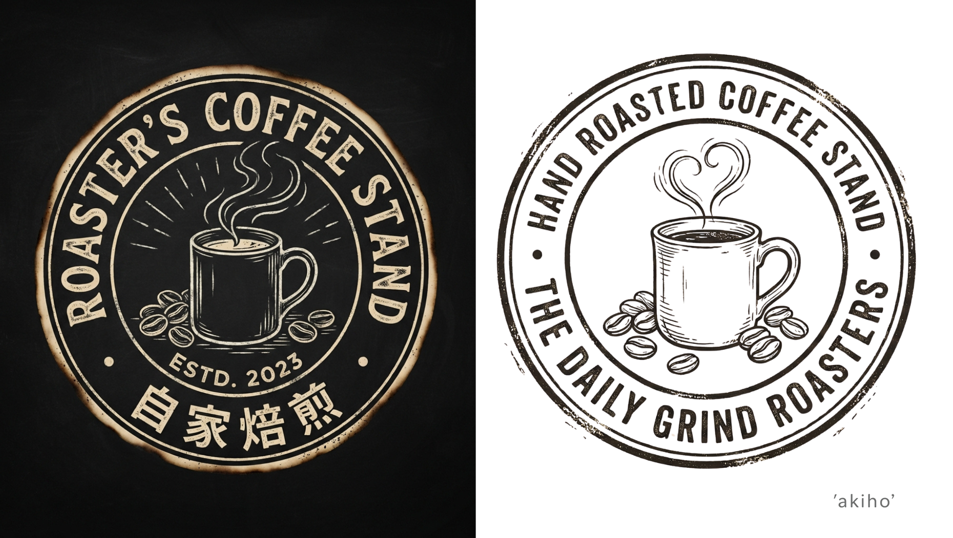 やはりこちらも的確な指示で、AIは「コーヒーの香りが漂ってきそうなロゴ」を描き出します。