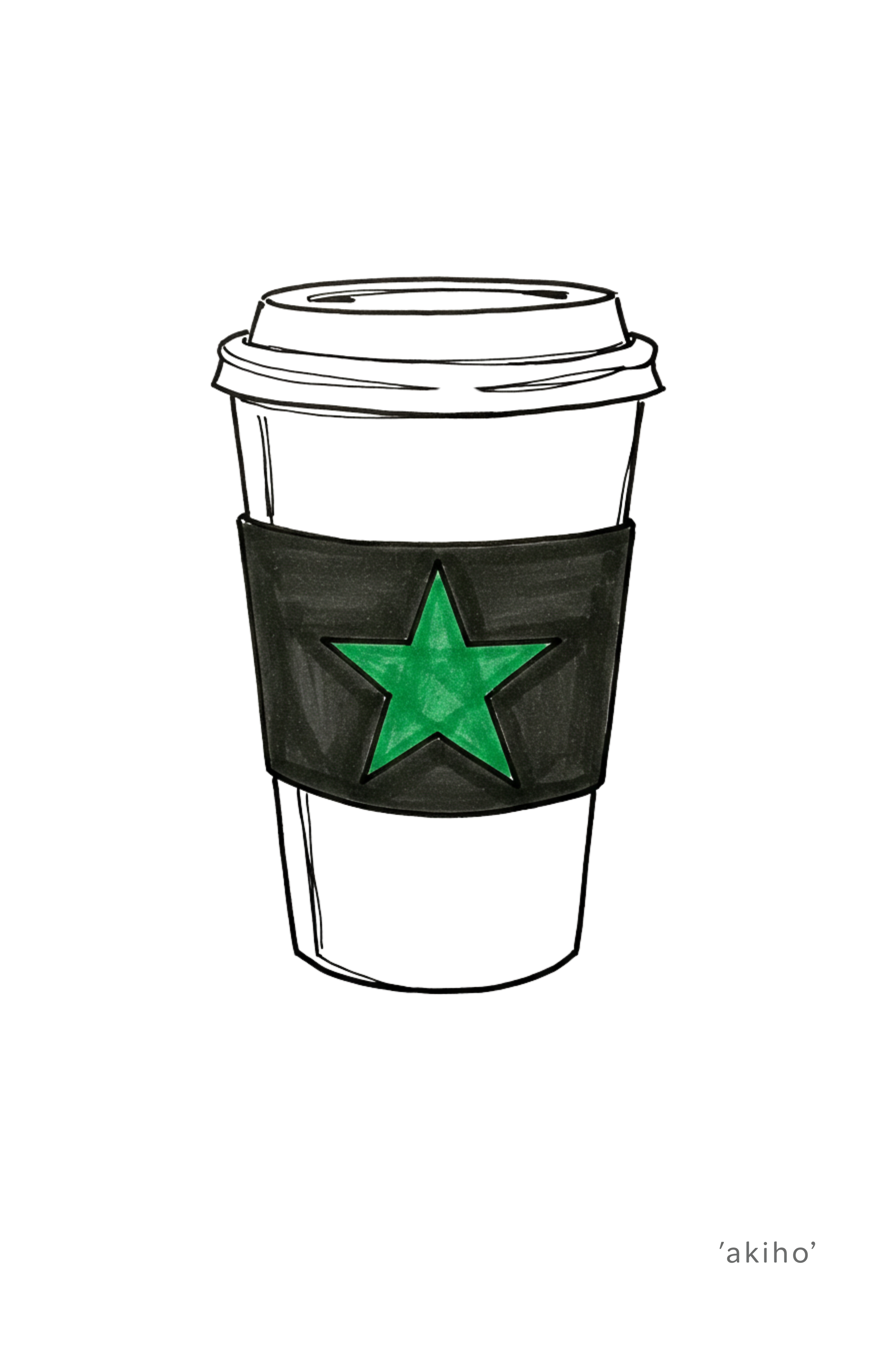 にすると(緑の星が描かれたシンプルなコーヒーカップ)