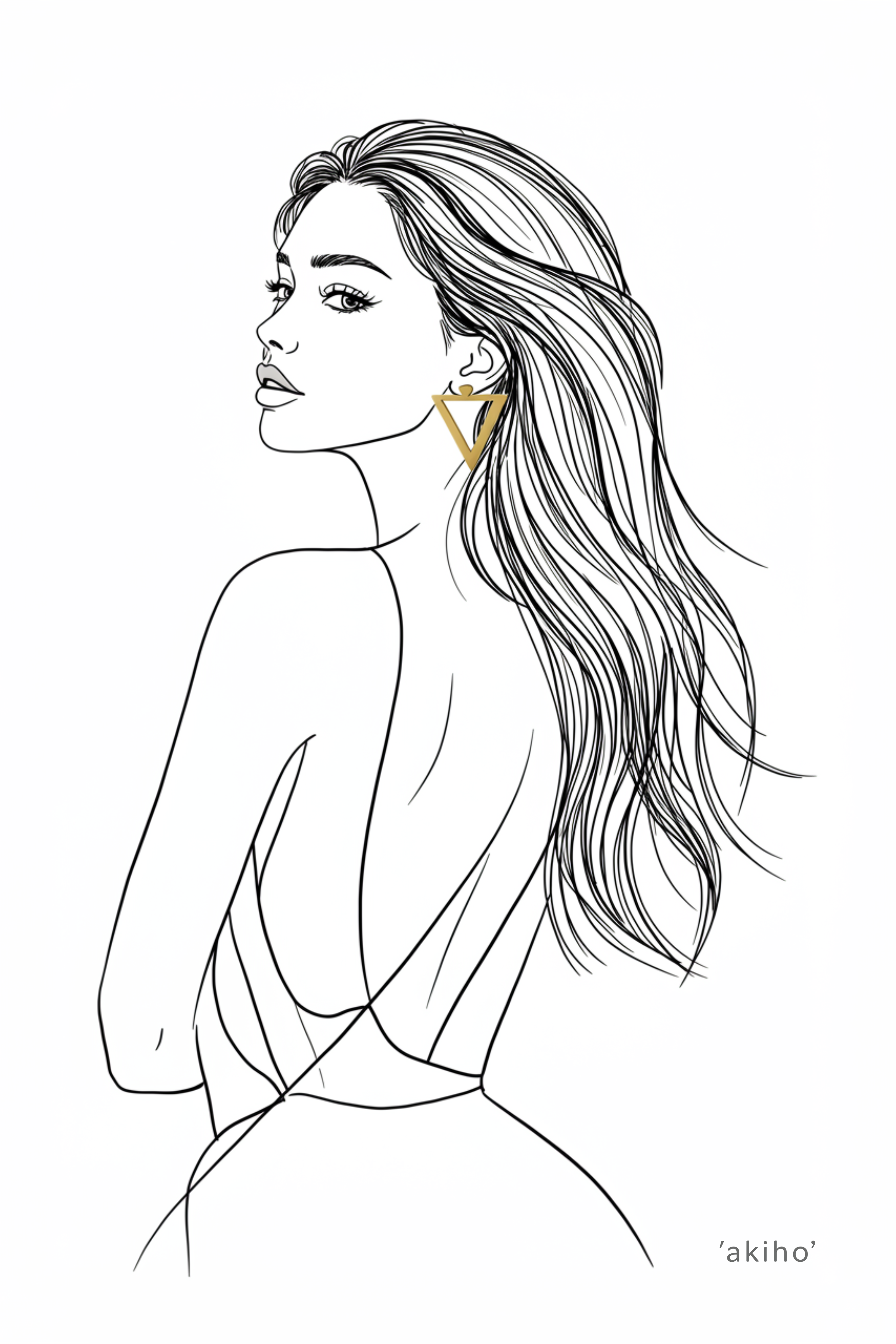 「エレガントで、ファッションスケッチ風に」と、欲しい"雰囲気"をダメ押しします。Minimalist line artだけだと、少し無機質で硬いイラストになることも。この一言を添えることで、ただの線画ではなく、洗練されたしなやかなニュアンスが加わります。