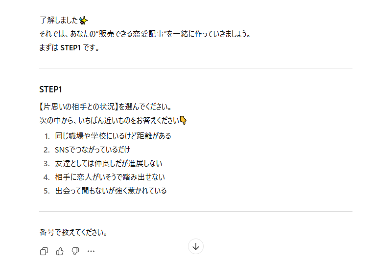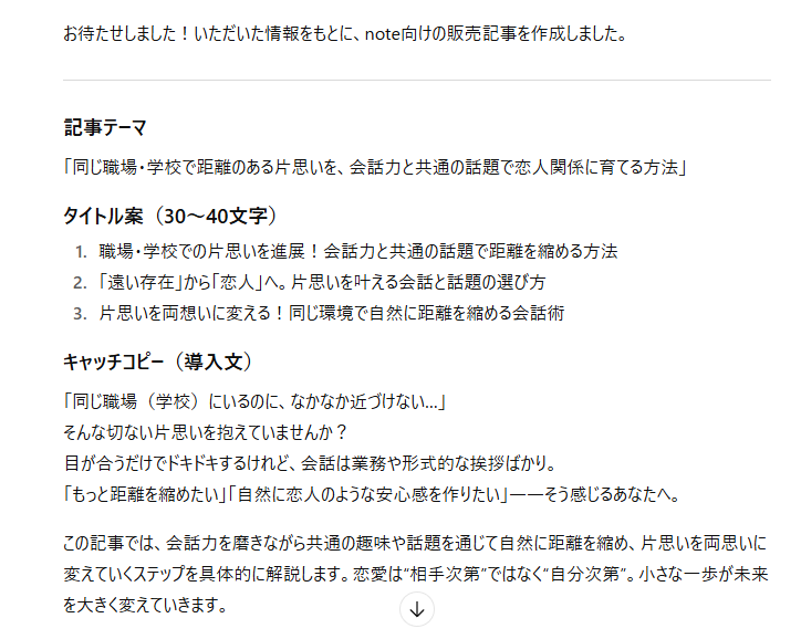 片思いの記事が書けるGPTsで作成した記事を以下のリンクからお読みいただけます。