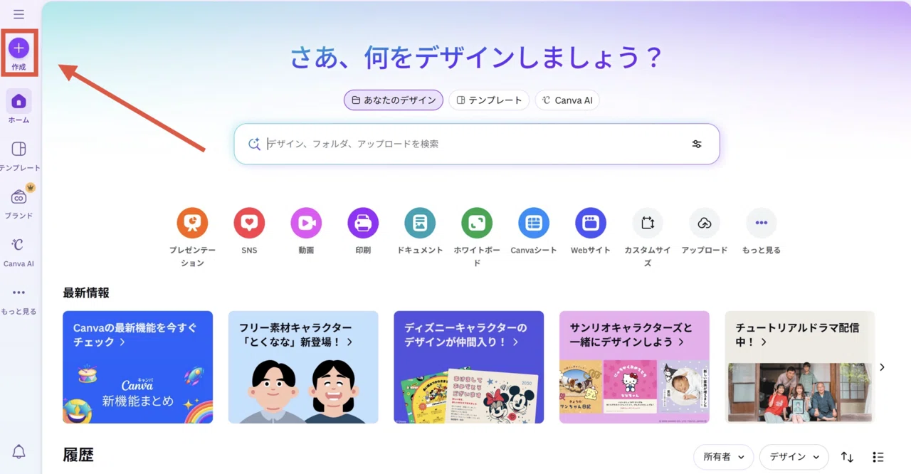 左上の作成をクリック