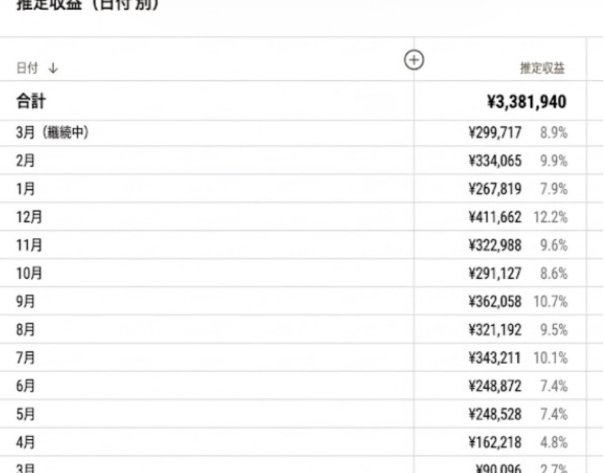 机上の空論ではない証明として、実際の収益を公開します。