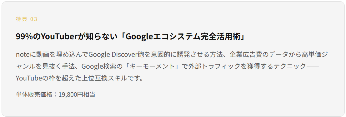 | 特典③:Googleエコシステム完全活用術 | 19,800円相当 |