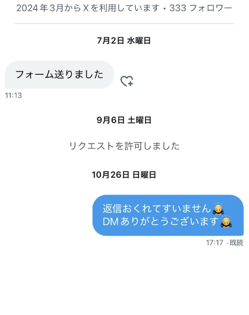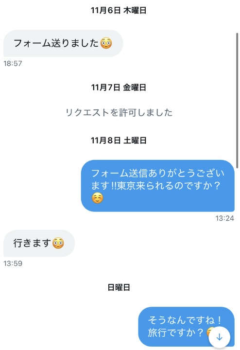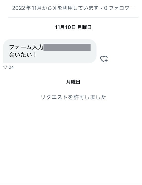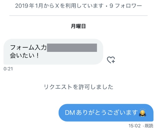 しっかりと裏垢を運用すればこのように女性側から積極的にDMをしてきてくれる。本記事の内容を理解し、行動することができれば、