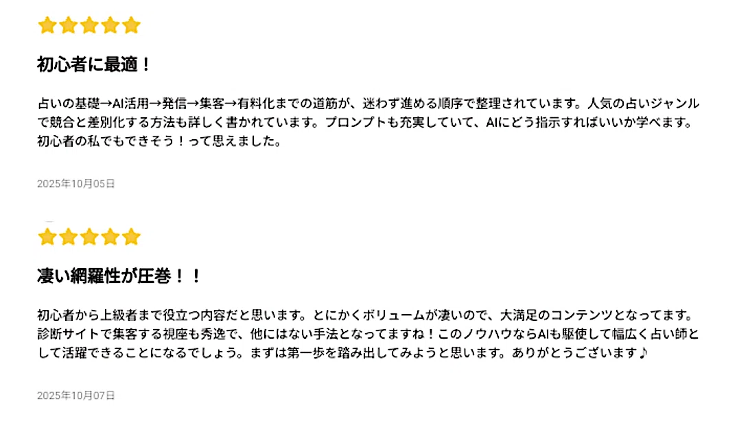 このノウハウは、本気でAIを活用して占いビジネスを始めたい方だけに購入いただきたいコンテンツです。
