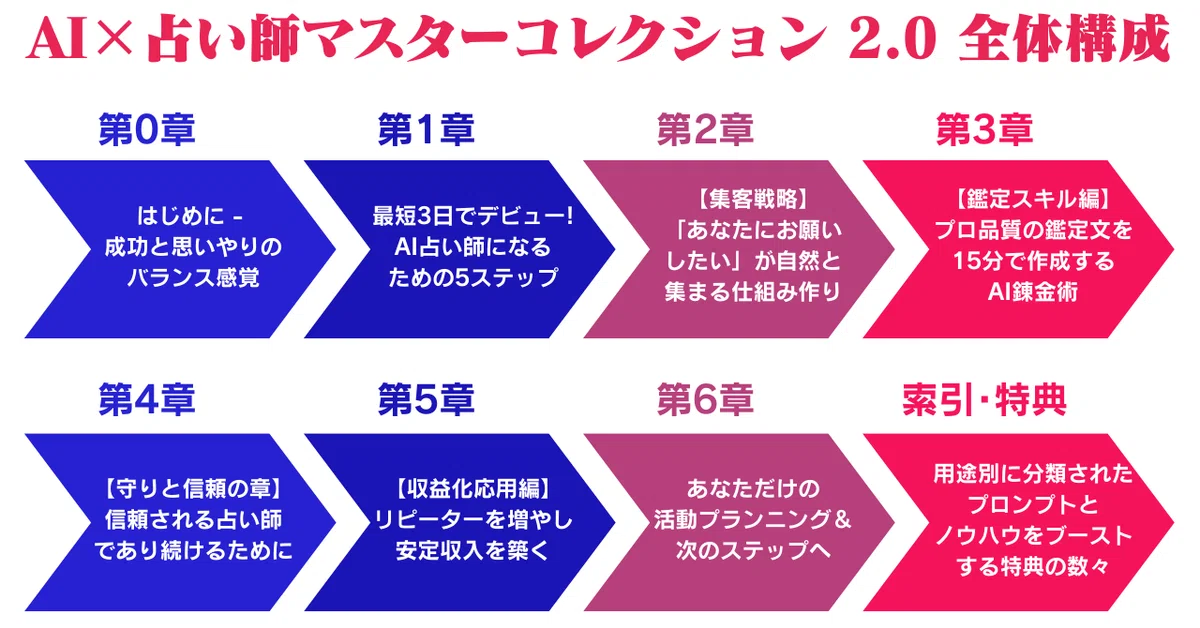 このコンテンツで学ぶプロンプト技術は、あなたが占い師として成功するためだけでなく、AI時代を生き抜くための「一生モノの武器」となるでしょう。