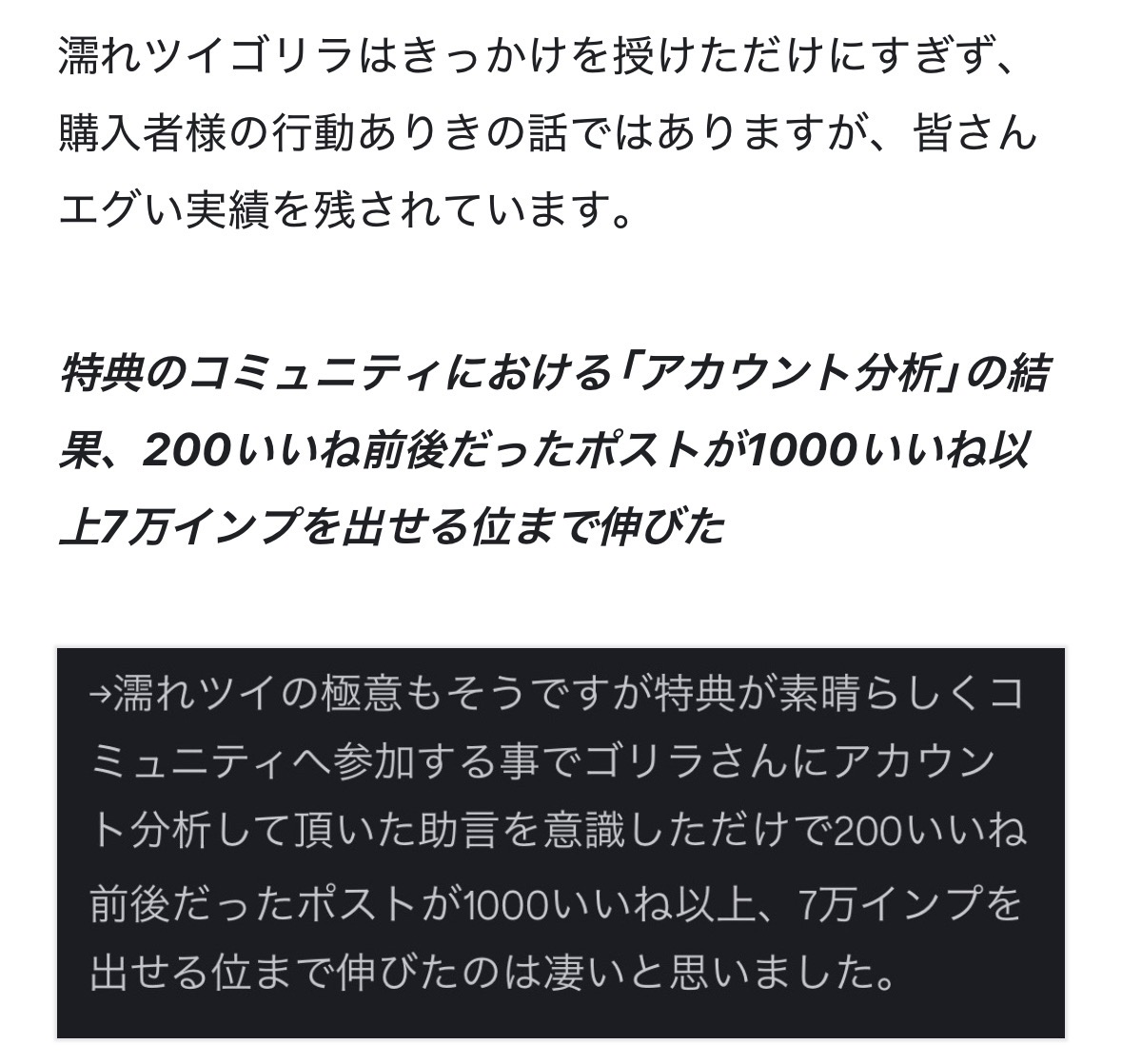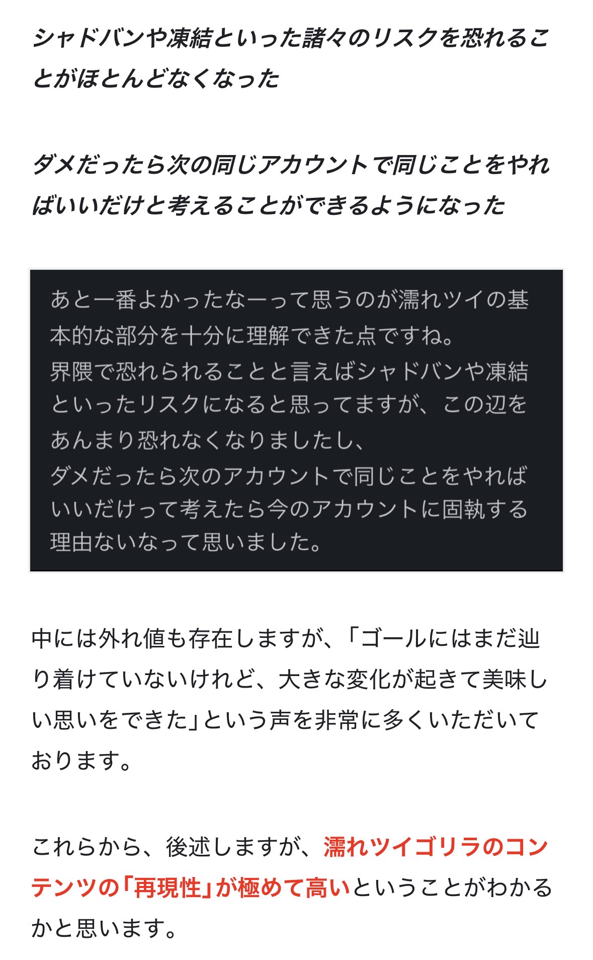 『濡れツイゴリラのノウハウを元に試行錯誤を継続した結果、ポストは1.5~3万インプで安定するようになり、"確変状態"に入った』方