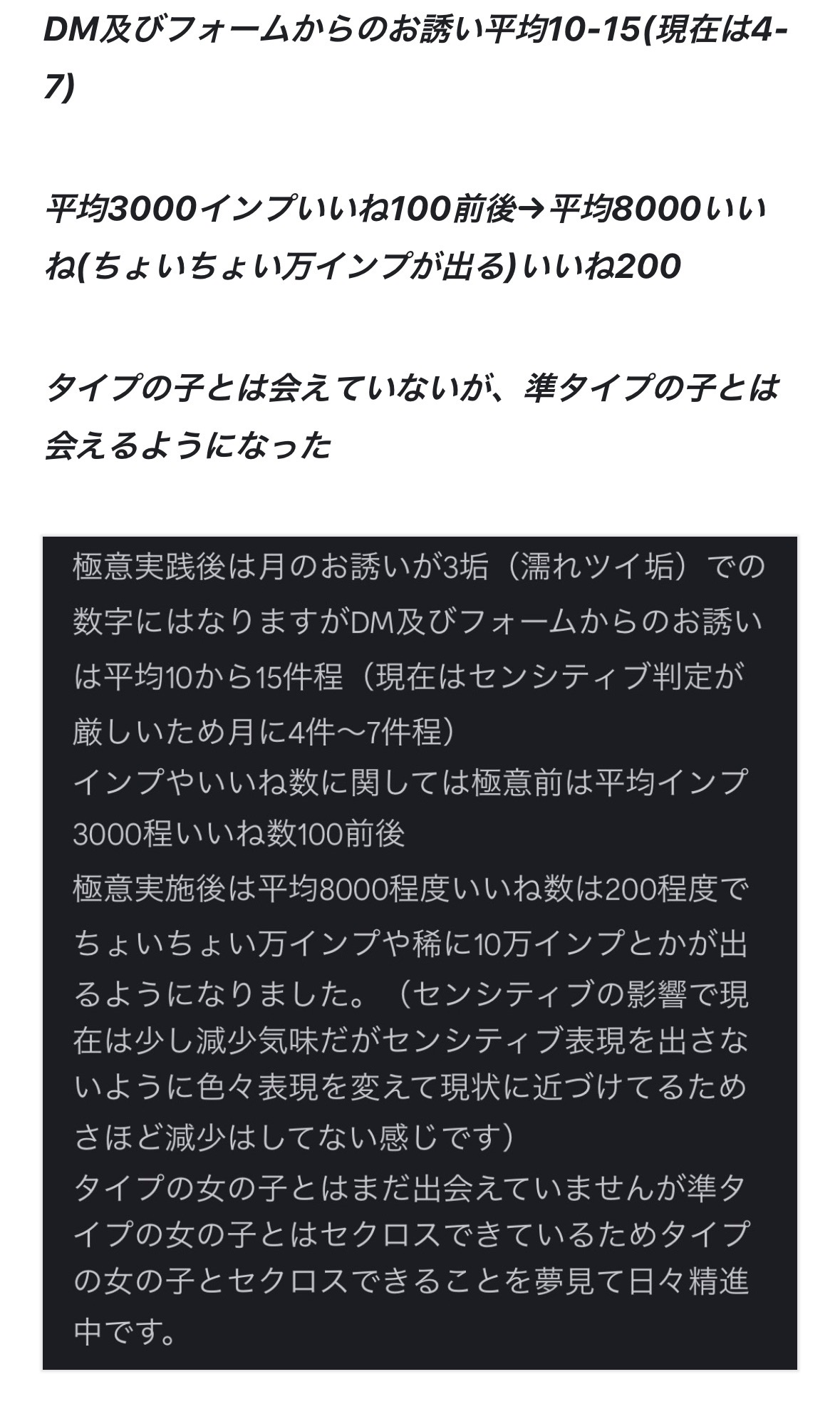 『フォロワー1000人未満、インプも全然だが、フォームからお誘いをもらうことができた』方