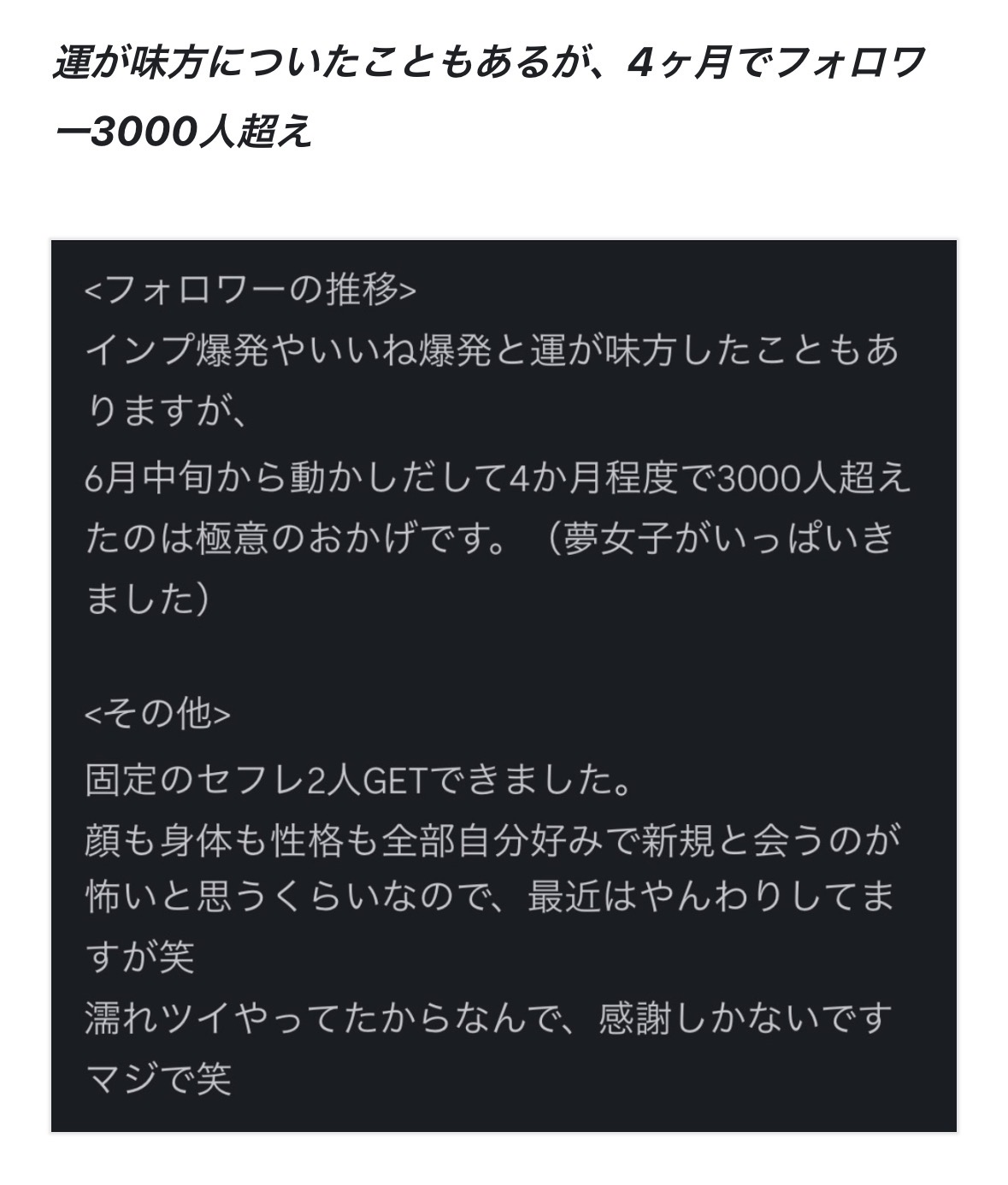 現環境で言うと、割合的に平均3万インプを出している濡れツイ師と同じレベルです。