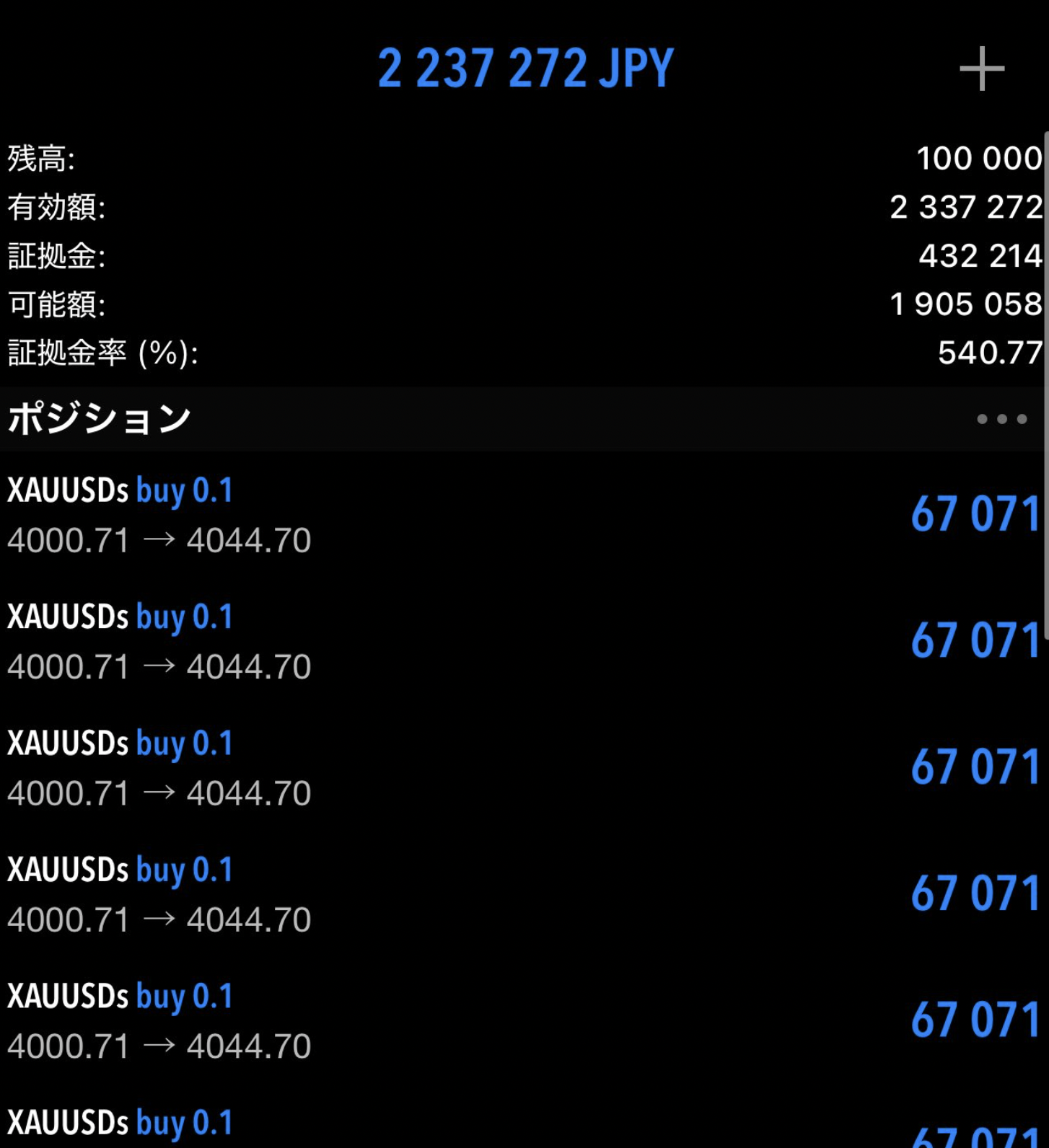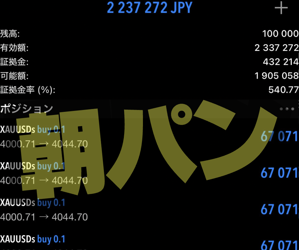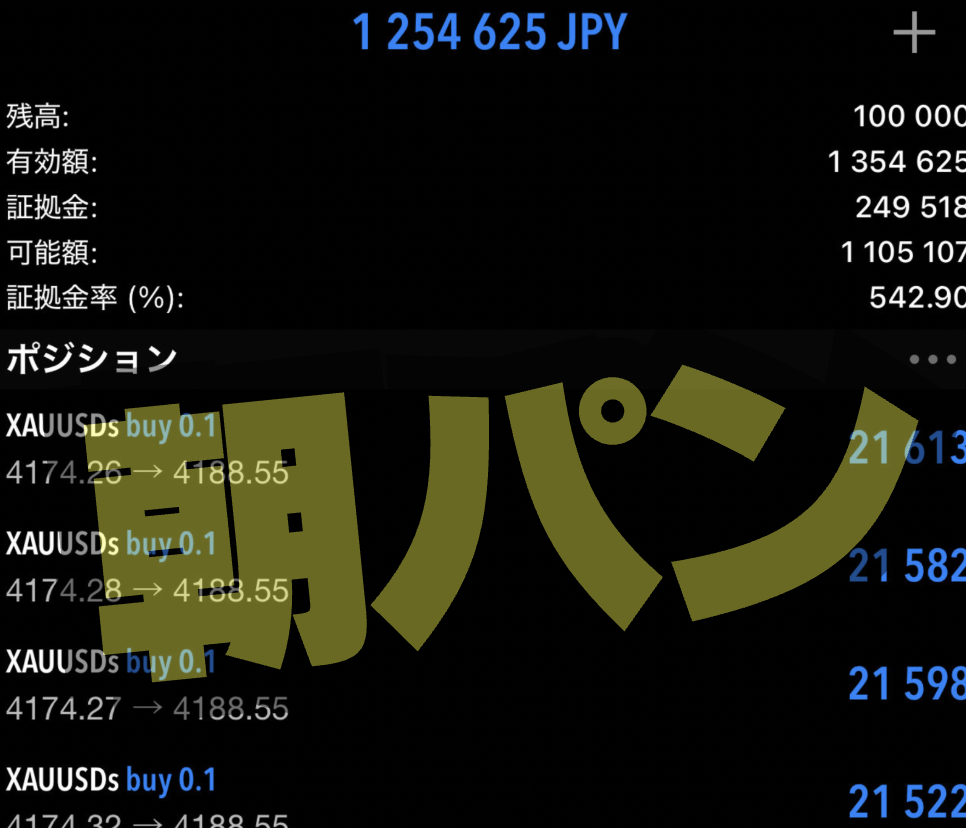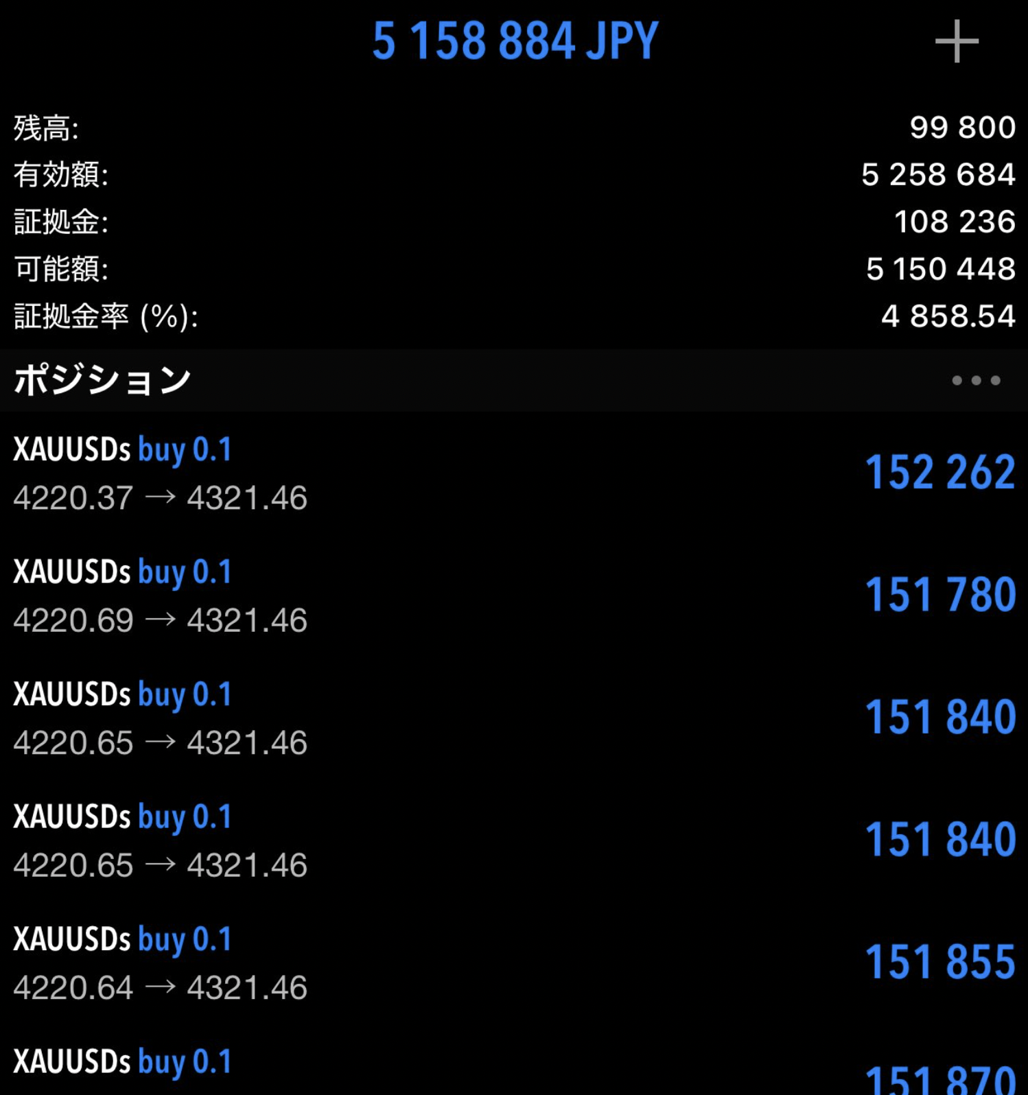 ゴールド1分足で10万円から100万円以上の利益をとる少額ハイレバトレードをやっています。