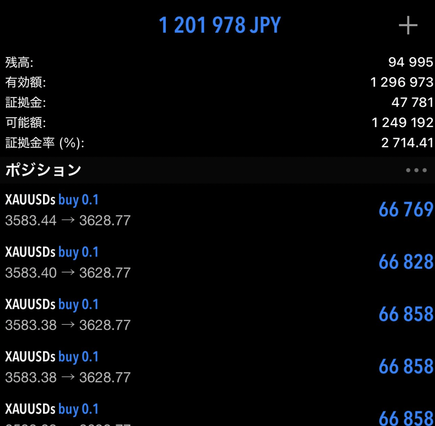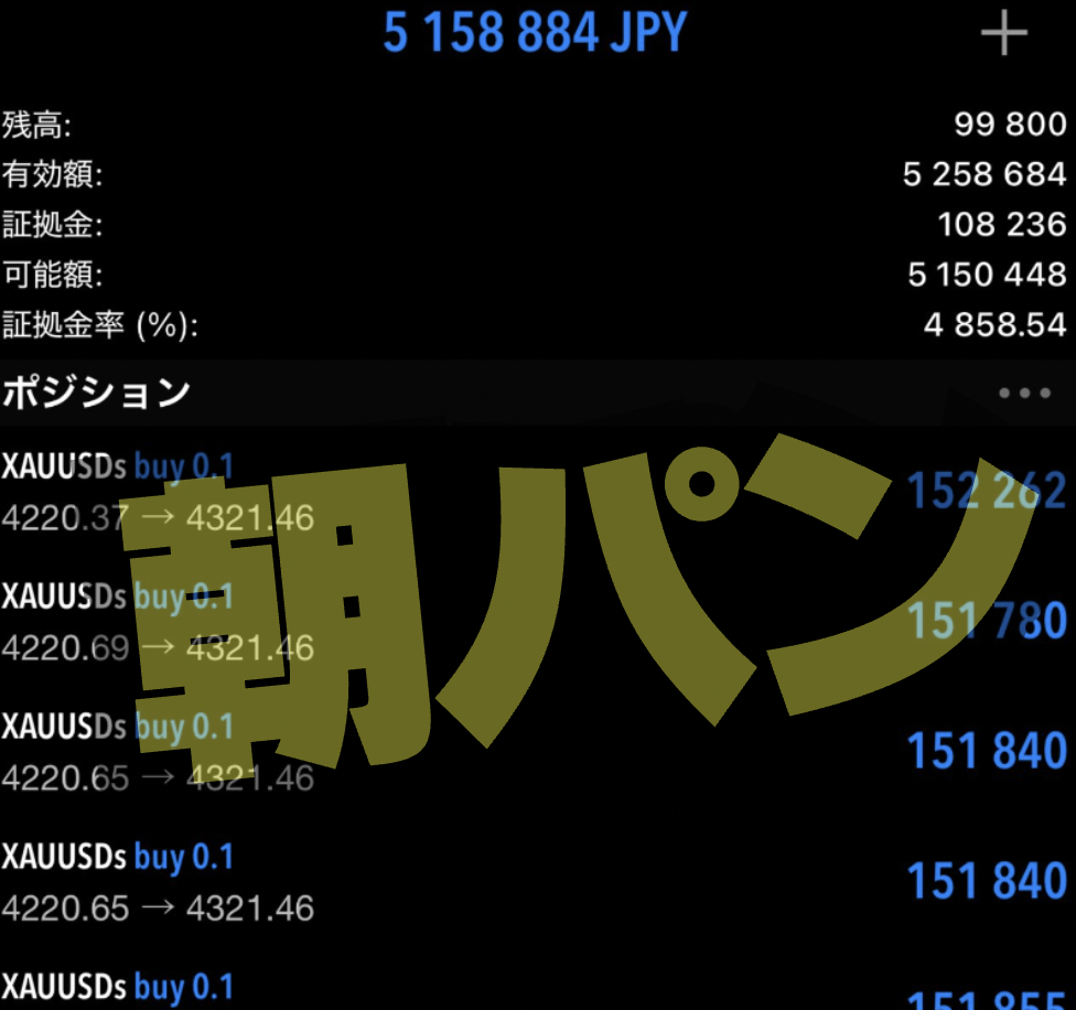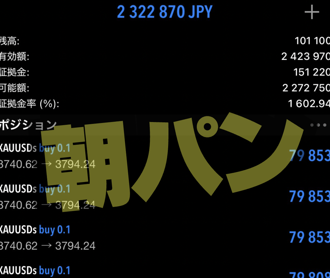 ゴールド1分足で10万円から100万円以上の利益をとる少額ハイレバトレードをやっています。
