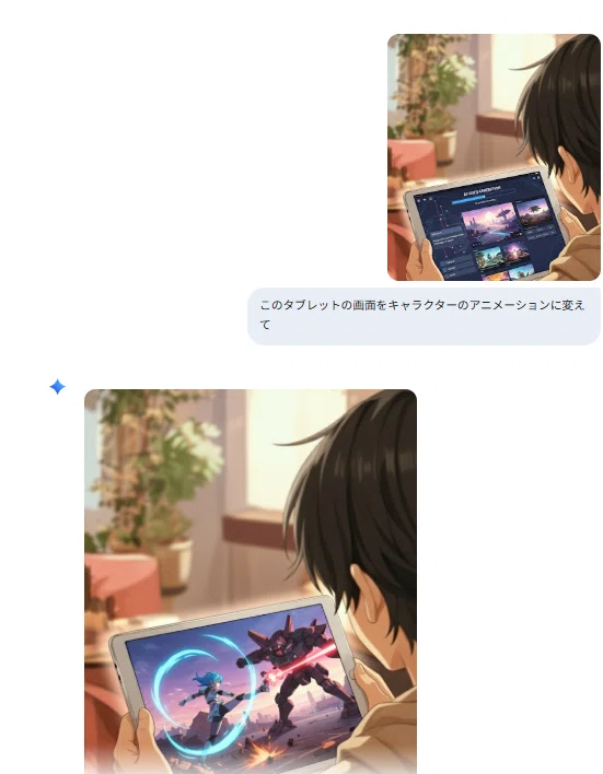 Step 1:Nano bananaに元画像を読み込ませ、”会話”で指示する