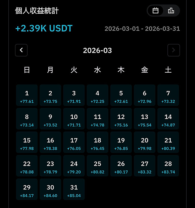 2,390 USDT、日本円にして約38万円に達しています。 現在進行形で、収益の規模は右肩上がりに拡大しています。 私が行ったのは「最初の設定」だけ。 複雑なチャート分析や深夜までの相場監視、精神を削る損切りの決断……。 これら苦労のすべてをAIに一任しています。