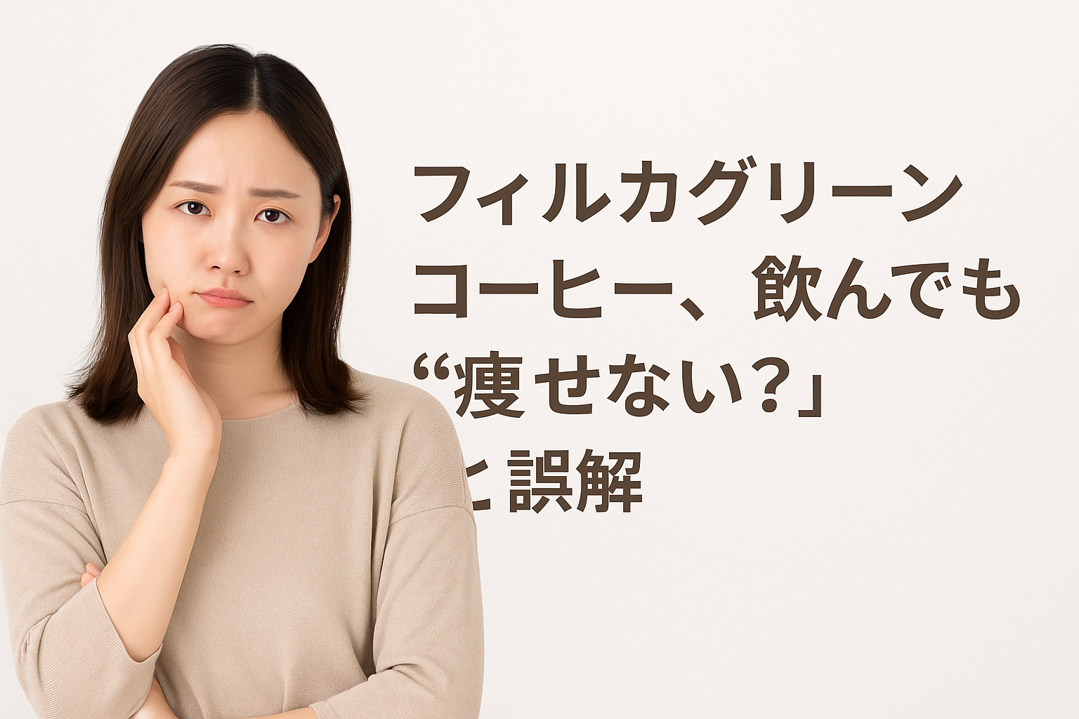 次に多い誤解は、「すぐに痩せると思ってしまう」こと。 私も最初の10日間で「変化ないなぁ」と感じていましたが、 フィルカグリーンコーヒーはあくまで“サポートアイテム”。