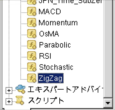 「表示」タブから「ナビゲータ」を選択し、ナビゲータの「ZigZag」をダブルクリックします。