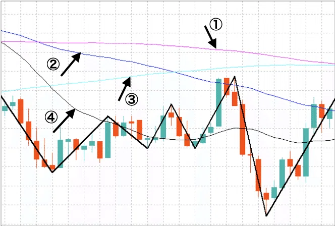 このロジックは、上昇パーフェクトオーダー時と下降パーフェクトオーダー時