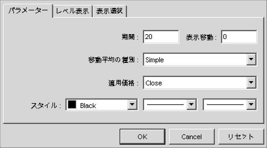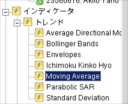 「表示」→「ナビゲーター」→「Moving Average」をダブルクリックします。